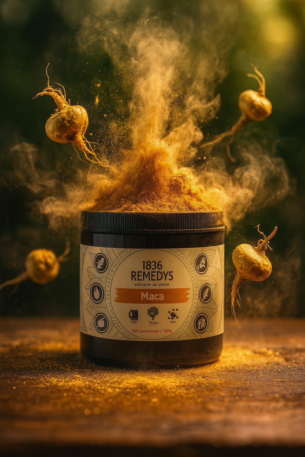 1836 Remedys presenta su Maca en su forma más limpia y funcional: 100% raíz seca pulverizada, sin mezclas ni aditivos, perfecta para incorporar en tu rutina diaria de bienestar.