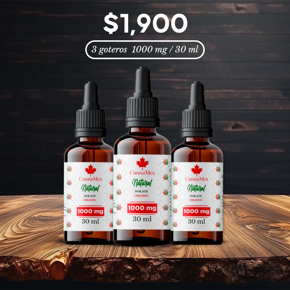 \nTambién ofrecemos 3 goteros de 1000 ml cada uno. Puedes elegir entre dos opciones de precio: \n \n1,900: Estos goteros de mayor tamaño te proporcionan una dosis más abundante de CBD para un alivio más duradero. \n \nNuestros goteros están diseñados para ofrecerte una experiencia personalizada y adaptada a tus necesidades individuales. ¡Aprovecha esta oferta única y descubre los beneficios del CBD con Cannamex CBD!
