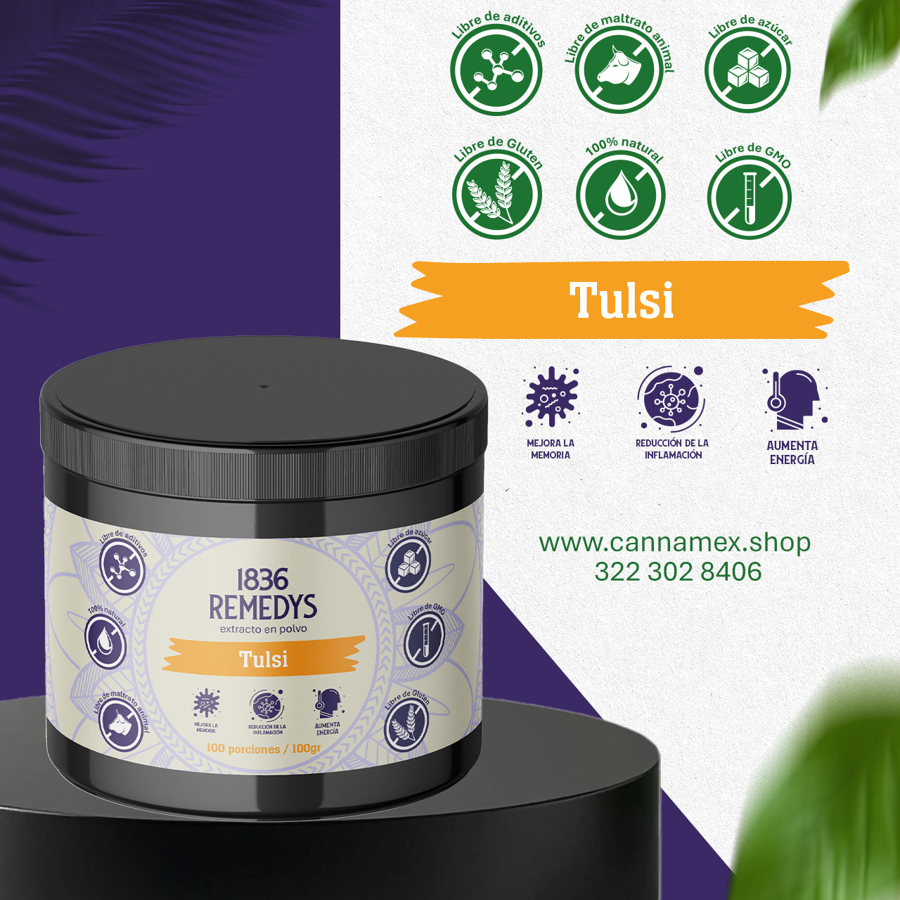 1836 Remedys lo presenta en su forma más pura: 100% raíz en polvo de Tulsi, sin aditivos, sin rellenos y sin mezclas. Perfecto para quienes buscan un adaptógeno suave pero profundo, ideal para una vida consciente, armónica y saludable.